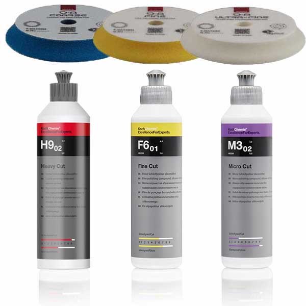 Koch Chemie 3er Politur Set. Aufeinander aufbauende Polituren. Mit den 3 Polierpads hast du die idealen Pads für jeden Poliergang. Ideal für dich!