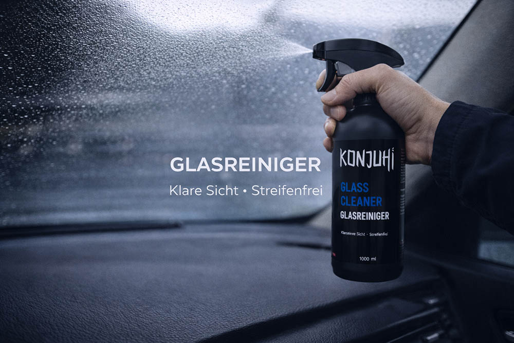KONJUHI Glass Cleaner ist ein hochwirksamer Glasreiniger für Glas- und Plexiglasflächen. Die leistungsstarke Formel entfernt selbst hartnäckige Verschmutzungen wie Fett, Öl, Nikotin, Klebereste, Silikon und weitere Ablagerungen – streifenfrei und rückstandslos. Ideal für Fahrzeugscheiben, Spiegel und sämtliche Glasoberflächen. Der Reiniger trocknet schnell und sorgt für eine glasklare, blendfreie Sicht. Vorteile & Eigenschaften Entfernt Fett, Öl, Nikotin, Klebereste & Silikonablagerungen Streifenfreie und rückstandslose Reinigung Für Glas-, Spiegel- und Plexiglasflächen geeignet Schnell trocknende Formel für klare Sicht Über 95 % biologisch abbaubar Ideal für Fahrzeug, Haushalt und Werkstatt Anwendung Den KONJUHI Glass Cleaner gleichmäßig auf die Glasfläche aufsprühen und kurz einwirken lassen. Anschließend mit einem sauberen, trockenen Glastuch abwischen. Bei Bedarf den Vorgang wiederholen, bis die Oberfläche streifenfrei sauber ist. Anwendungsgebiete Fahrzeugscheiben innen & außen Spiegel und Glastrennwände Plexiglas- und Kunststoffverglasungen KONJUHI Glass Cleaner sorgt für eine klare, streifenfreie Reinigung und ermöglicht eine schnelle, zuverlässige Entfernung hartnäckiger Glasverschmutzungen. FAQ Kann der Glasreiniger auf Plexiglas angewendet werden?Ja, der KONJUHI Glass Cleaner eignet sich auch für Plexiglas- und Kunststoffverglasungen. Hinterlässt der Reiniger Streifen?Nein, die Formel reinigt streifenfrei und ohne Rückstände. Wie lange muss der Glass Cleaner einwirken?Eine kurze Einwirkzeit reicht aus, bevor die Fläche abgewischt wird. Ist der Reiniger für Innen- und Außenflächen geeignet?Ja, der Glass Cleaner kann auf allen Glasflächen innen wie außen genutzt werden. Kennzeichnung der Inhaltsstoffe: Duftstoffe.