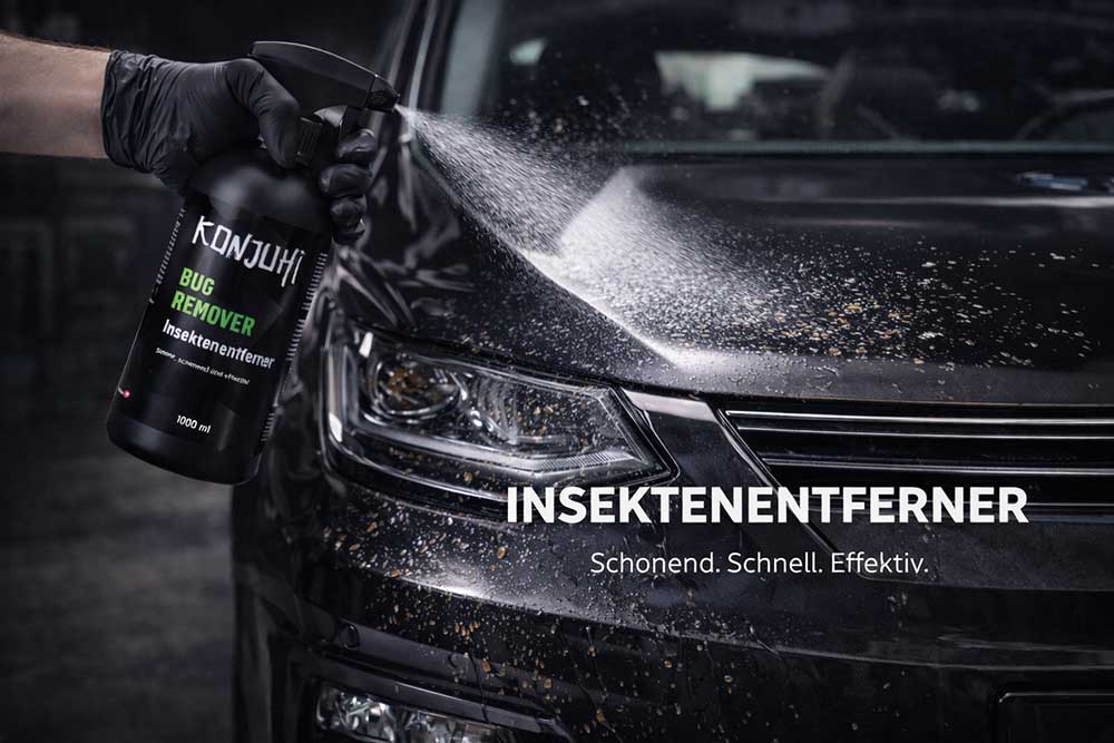 KONJUHI Bug Remover ist ein leistungsstarker Insektenentferner mit spezieller Aktivformel zur schnellen Zersetzung von Eiweißen und Fetten. Er löst Insektenreste blitzschnell von Glas, Lack, Chrom und Kunststoff, ohne die Oberflächen zu beschädigen – ideal als Vorbereitung vor jeder Autowäsche. Vorteile & Eigenschaften Schnelle Zersetzung von Eiweißen und Fetten Löst Insektenreste zuverlässig und materialschonend Sicher auf Glas, Lack, Chrom und Kunststoff Ideal als Pre-Cleaner vor der Autowäsche Enthält überdurchschnittlich biologisch abbaubare Tenside Einfache, schnelle und effiziente Anwendung Anwendung Den KONJUHI Bug Remover gleichmäßig auf die zu reinigende Fläche aufsprühen. 3–5 Minuten einwirken lassen, jedoch nicht antrocknen lassen. Bei hartnäckigen Verschmutzungen einen Schwamm zur Unterstützung nutzen. Anschließend den gelösten Schmutz gründlich mit reichlich Wasser abspülen. Anwendungsgebiete Frontstoßstangen & Kühlergrills Windschutzscheiben & Außenspiegel Lackierte Flächen und Kunststoffteile KONJUHI Bug Remover ermöglicht eine schnelle, gründliche und materialschonende Entfernung hartnäckiger Insektenrückstände – perfekt vor jeder Hand- oder Maschinenwäsche. FAQ Ist der Bug Remover für alle Außenflächen geeignet?Ja, er kann sicher auf Lack, Glas, Chrom und Kunststoff angewendet werden. Wie lange sollte der Insektenentferner einwirken?3–5 Minuten, ohne dass das Produkt antrocknet. Kann der Bug Remover Lack oder Kunststoff angreifen?Nein, die Formel ist materialschonend und für alle gängigen Oberflächen geeignet. Wann sollte der Bug Remover eingesetzt werden?Optimal vor jeder Autowäsche, um Insektenreste effektiv zu lösen. Kennzeichnung der Inhaltsstoffe: 5–15 % anionische Tenside, < 5 % nichtionische Tenside, < 5 % Polycarboxylate, < 5 % Phosphonate, Duftstoffe, d-Limonene.
