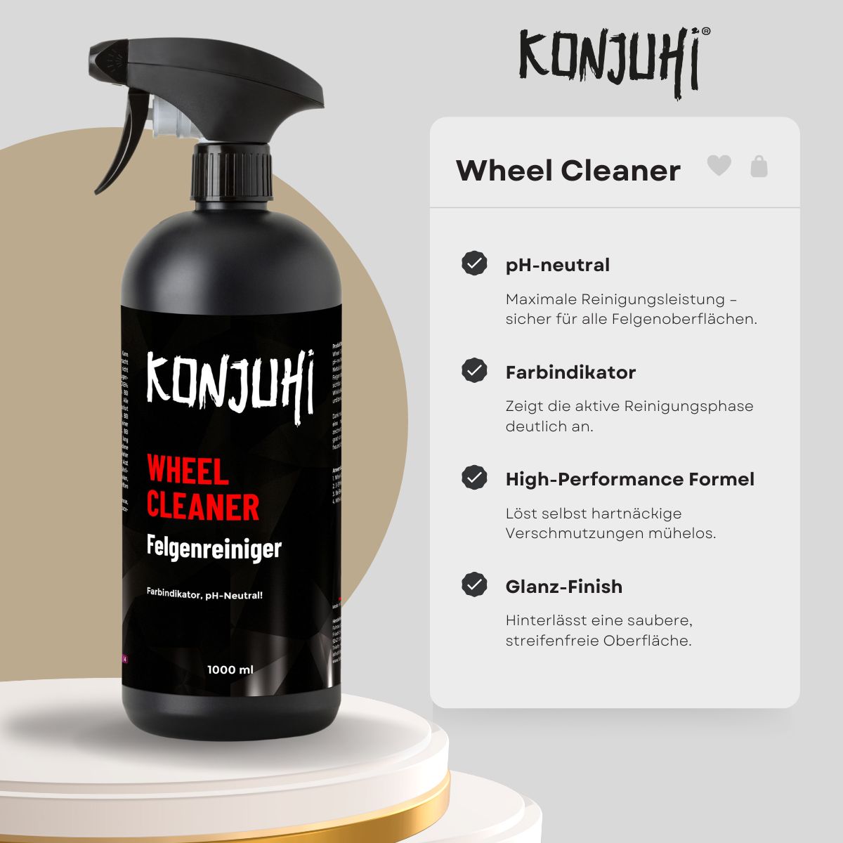 KONJUHI Test Drive Kit – Lerne unsere Fahrzeugpflege-Produkte kennenMit dem KONJUHI Test Drive Kit erhältst du eine Kombination aus bewährten Klassikern und neuen Produkten – ideal, um dir selbst ein Bild von Qualität, Wirkung und Anwendung zu machen.Das Set bietet dir alles, was du für eine gründliche Reinigung und Pflege deines Fahrzeugs benötigst – innen wie außen.Enthaltene Produkte:Bug Remover Insektenentferner 1L – löst hartnäckige Insektenrückstände materialschonendWheel Cleaner Felgenreiniger 1L – entfernt Bremsstaub und Straßenschmutz effektivCLEAN-IN Innenraumreiniger 500ml – für Kunststoff, Armaturen und textile OberflächenGlass Cleaner Glasreiniger 500ml – sorgt für klare, streifenfreie SichtQuick Detailer Finish-Spray 500ml – frischt den Lack auf und hinterlässt ein glattes, glänzendes FinishOptional erhältlich mit:Leather Care Lederpflege 500ml – für sanfte Reinigung und Pflege von Echt- und KunstlederDas KONJUHI Test Drive Kit ist ideal, um sowohl unsere beliebtesten als auch unsere neuesten Produkte selbst zu testen.Mit diesem Set lernst du unsere Produktqualität direkt in der Anwendung kennen. Ideal für alle, die Wert auf zuverlässige Pflege, starke Reinigungsleistung und hochwertige Inhaltsstoffe legen.Teste KONJUHI – und erlebe Fahrzeugpflege auf einem neuen Level.