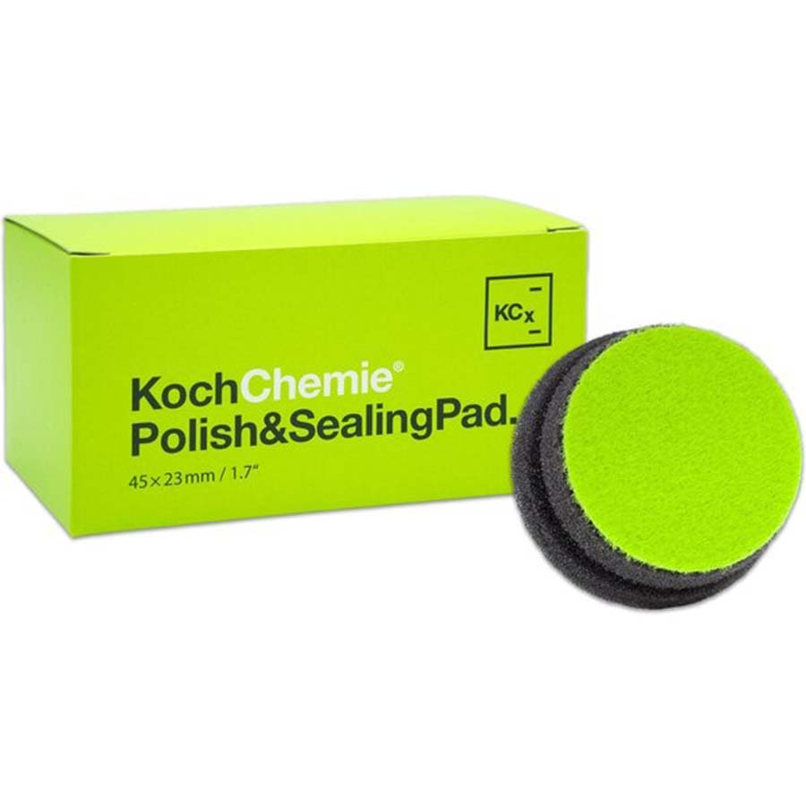Entdecken Sie das Koch Chemie Polish & Sealing Pad, den extra weichen Finish-Schwamm für den sparsamen und gleichmäßigen Auftrag von Versiegelungsprodukten wie 1K-Nano oder Lack-Polish grün P1.03.Vorteile und Eigenschaften:Optimiertes Handling: Mit einer Höhe von nur 23 mm sorgt das Polish & Sealing Pad für geringere Torsionskräfte, was ein hervorragendes Handling und höchste Stabilität ermöglicht.Gleichmäßiger Auftrag: Die optimierte Retikulierung (Offenzelligkeit) und Zellzahl tragen zu einem gleichmäßigen Auftrag und sehr guten Hygieneeigenschaften bei.Maximale Flexibilität: Die innovative Fräskante ermöglicht eine bessere Anpassung an Konturen und sorgt für mehr Flexibilität des Pads.Prozesssicherheit: Das farblich abgestimmte Vlies zur Politur garantiert höchste Prozesssicherheit.Eigenschaften:Farbe: GrünHärtegrad: WeichStauchhärte: 4 / Abrasivität: 2Maße Polierpad: 45 x 23 mmAufnahme Poliermaschine: 50mmwaschbar, formbeständig und langlebigVertrauen Sie auf das Koch Chemie Polish & Sealing Pad für ein makelloses Finish und höchste Effizienz beim Auftrag von Versiegelungsprodukten.