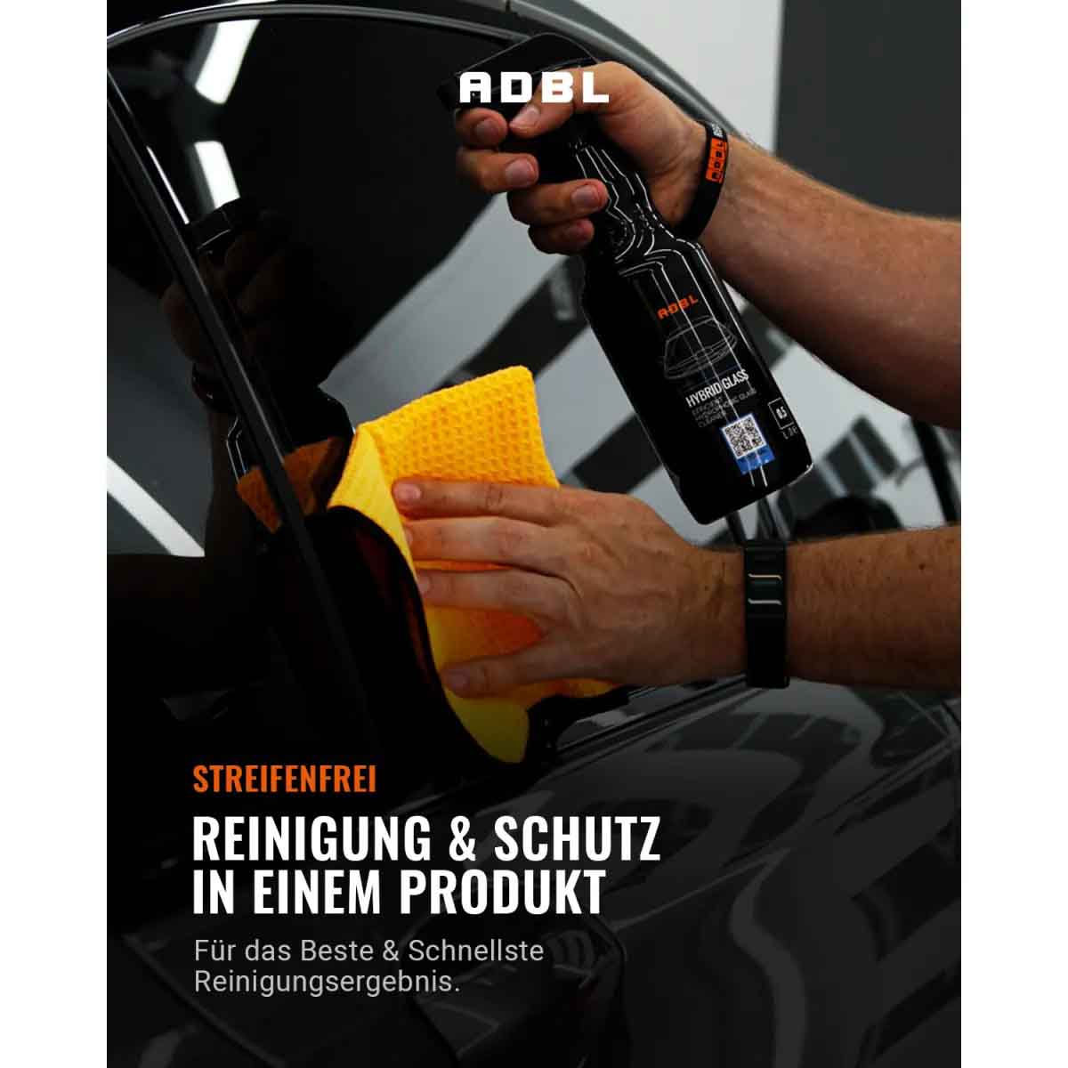 ADBL Hybrid Glass bietet klare Sicht, zuverlässigen Schutz und eine besonders einfache Verarbeitung – für streifenfreie Sauberkeit und hydrophobe Performance auf allen Glasflächen.