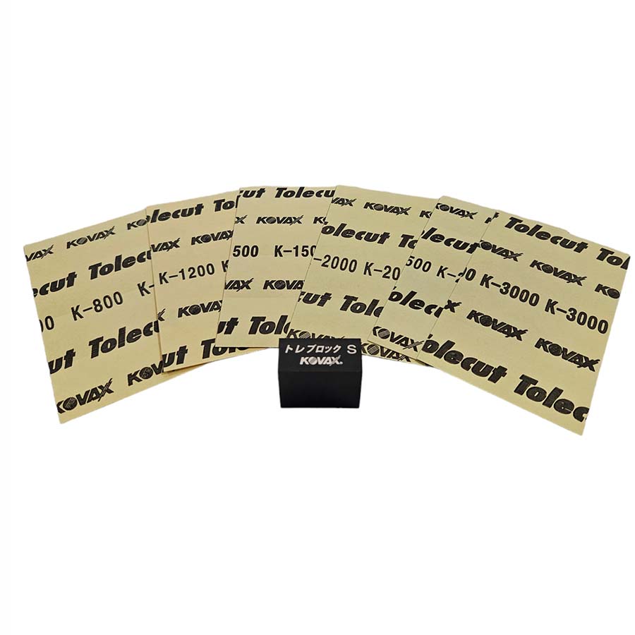 Ideal um Staubeinfschlüsse, Lackläufer und andere Defekte zu schleifen.Durch die Möglichkeit trocken zu schleifen, wird eine permanente Kontrolle gewährleistet.Wir bieten dem Fahrzeugaufbereiter, Lackierer und Fahrzeugliebhaber, mit diesem Kovax Tolecut-Set, die Möglichkeit Staubeinschüsse und ausgetupften Lackdefekte einfach zu entfernen. Ideal auch z. B. um Lackläufer bündig zu schleifen. Tolecut bietet eine einfache Kontrolle und Handhabung durch die Möglichkeit trocken zu schleifen. So können Sie schneller das Schleifergebnis kontrollieren. Der Tolecut Schleifblock lässt sich einfach mit der selbstklebenden Schleiffolie (viel längere Standzeit als Schleifpapier) bekleben, der Block ist Plan und unverwüstlich. Anwendbar auf allen Lacken, selbst auf Bootslack und modernen kratzfesten Lacken.Set Inhalt:1 x Tolecut Schleifblock 1 x Yellow: K800 (1Bogen a 8 Stk.)1 x Orange: K1200(1Bogen a 8 Stk.)1 x Pink: K1500 (1Bogen a 8 Stk.)1 x Green: K2000 (1Bogen a 8 Stk.)1 x Blue: K2500 (1Bogen a 8 Stk.)1 x Black: K3000 (1Bogen a 8 Stk.)