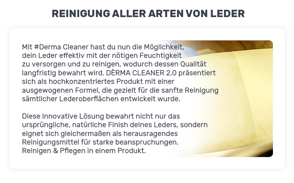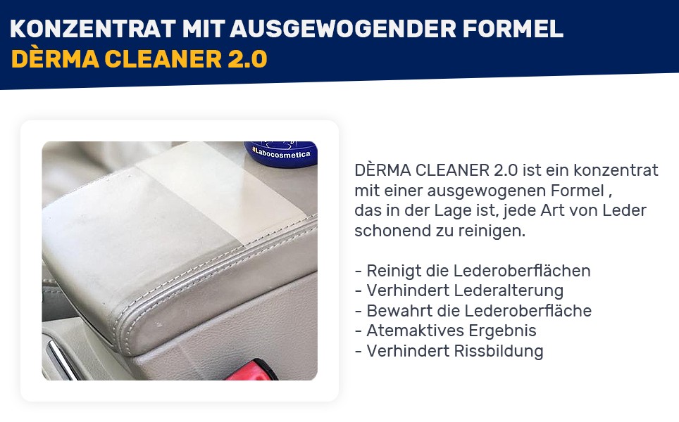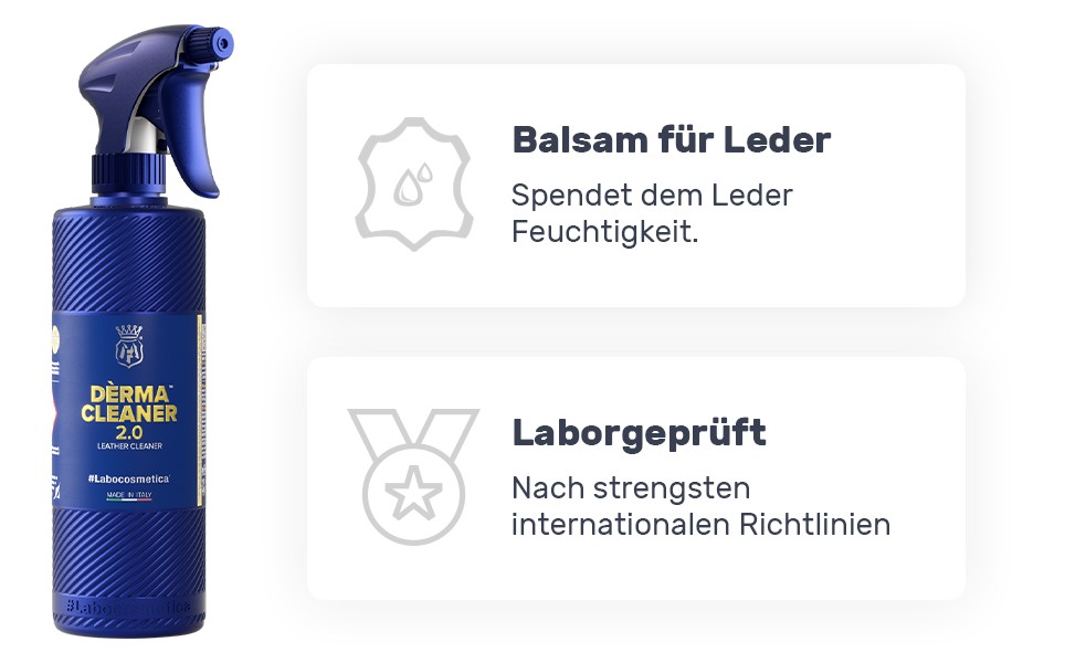 Mit dem Labocosmetica Dèrma Cleaner wird Lederpflege und -reinigung einfacher denn je – für beständige Schönheit und langfristigen Schutz deiner Ledermöbel und Fahrzeugoberflächen!