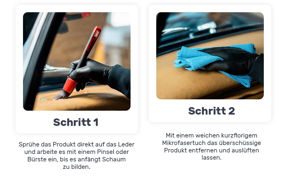- Anwendung: Reinigt und pflegt Lederoberflächen