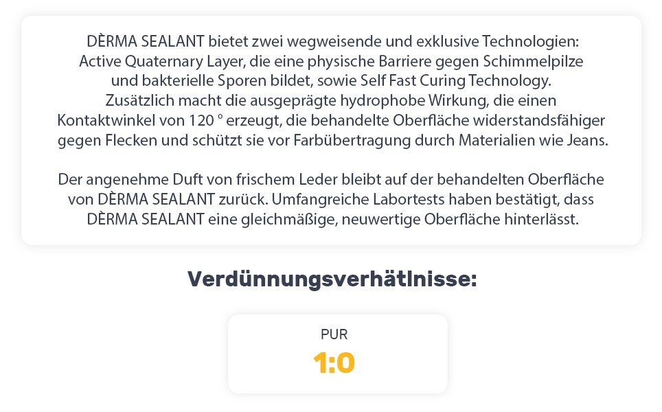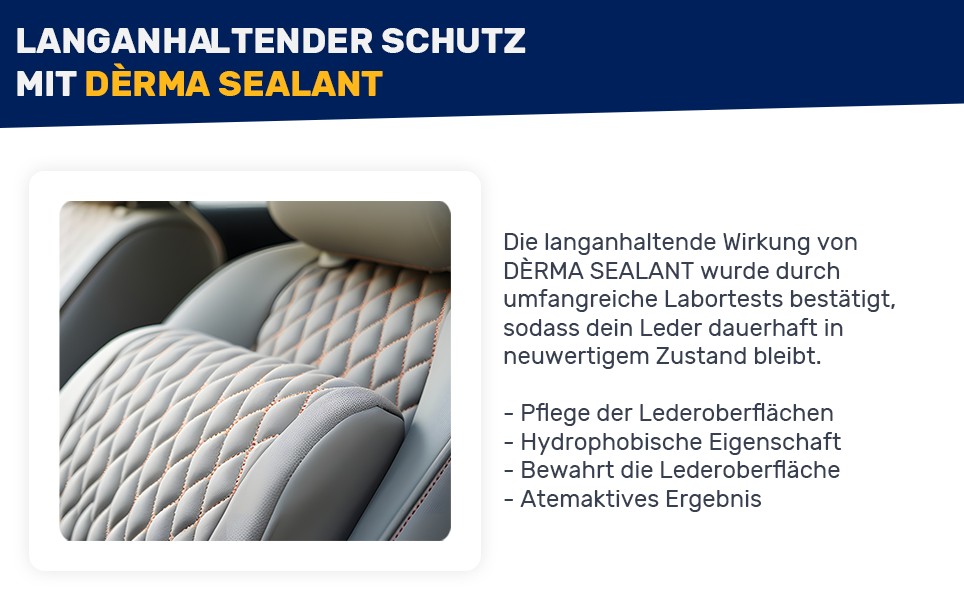 Fazit: Mit Dèrma Sealant erhältst du einen langanhaltenden Schutz für deine Lederoberflächen, der das Leder nicht nur schützt, sondern auch seine natürliche Schönheit bewahrt. Ideal für Autos, Möbel und alle Lederprodukte, die du langfristig pflegen möchtest!