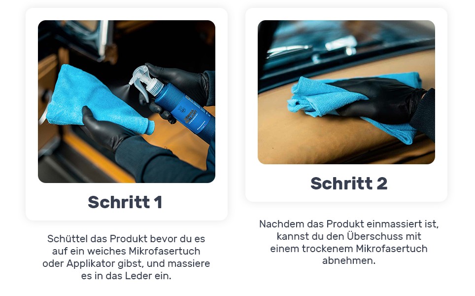 Reinige das Leder zuerst mit einem geeigneten Lederreiniger.