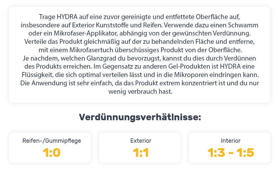 Labocosmetica Hydra ist ein vielseitiges Hyper-Dressing für Innen- und Außenkunststoffe, das sich leicht auftragen lässt und für langanhaltenden Schutz sorgt. Die innovative Polymermatrix bietet bis zu drei Monate Haltbarkeit, schützt Gummi, Vinyl, Leder und Kunststoffe vor UV-Strahlen und frischt die Farben auf, ohne einen fettigen Film zu hinterlassen. Dank der wasserbasierten Formel ohne Lösungsmittel ist Hydra besonders materialschonend, hinterlässt keine Flecken oder Verfärbungen und bietet eine hohe Beständigkeit gegen Wasser, Schmutz und chemische Reinigungsmittel. Die hydrophobe Wirkung sorgt zudem für einen beeindruckenden Abperleffekt. Langanhaltender Schutz für Kunststoff, Leder und GummiUV-Schutz und Farbauffrischung ohne zu fettenBeständig gegen Wasser, Schmutz und ChemikalienFlexibler Glanzgrad – pur oder bis 1:5 verdünnt anwendbarWirkung durch eine zweite Schicht verstärkbar