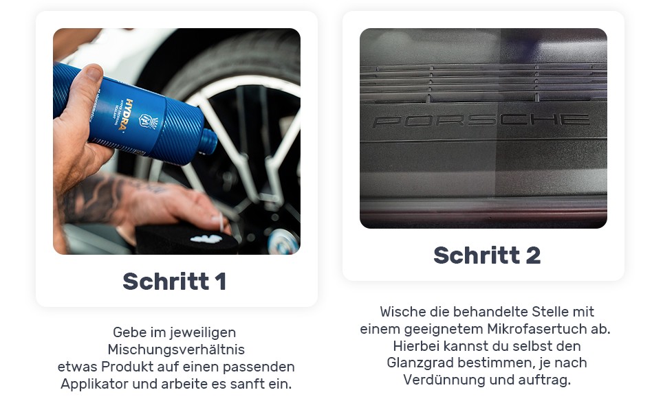HPC 2.0 – Die nächste Generation der hybriden Polysiloxan-Beschichtung HPC 2.0 ist eine innovative Schutzbeschichtung, die modernste Polysiloxan-Technologie mit leistungsstarken Hochleistungs-Polymeren kombiniert. Diese fortschrittliche Hybridformel bildet eine extrem hydrophobe Schutzschicht, die dein Fahrzeug für bis zu 24 Monate oder 30.000 km vor äußeren Einflüssen bewahrt. Durch die einzigartige Verbindung von Polymeren wird eine außergewöhnlich glatte Oberfläche geschaffen, die die Widerstandsfähigkeit gegen Kratzer erhöht und das Risiko von Mikrokratzern während der Fahrzeugwäsche reduziert. HPC 2.0 hebt nicht nur die Farbintensität des Lackes hervor, sondern sorgt auch für ein makelloses Finish mit langanhaltendem Glanz. Warum HPC 2.0? Maximaler Schutz – Die Hybrid-Polysiloxan-Technologie bietet eine widerstandsfähige, chemikalienbeständige Schutzschicht.Extrem hydrophob – Wasser perlt sofort ab, wodurch Schmutzablagerungen und Verunreinigungen minimiert werden.Intensivierte Farbtiefe – Die hochwertigen Polymere verstärken den Glanz und die Tiefe der Lackfarbe.Langanhaltende Performance – Beständigkeit gegen chemische Einflüsse und mechanischen Abrieb sorgt für eine dauerhafte Schutzwirkung.Optimierte Verarbeitung – Einfaches Auftragen und Entfernen, mit hoher Fehlertoleranz für ein makelloses Ergebnis.Effiziente Anwendung – Spart Material, da weniger Mikrofasertücher für die Nachbearbeitung benötigt werden.Vielseitig einsetzbar – Als einzelne Schutzschicht oder in mehreren Schichten für noch mehr Glanz und Widerstandsfähigkeit.Anwendungshinweise: Vorbereitung: Die Lackoberfläche gründlich reinigen und entfetten, um optimale Haftung zu gewährleisten.Auftrag: Gleichmäßig auftragen und mit einem Applikator verteilen.Trocknung & Finish: Die empfohlene Trockenzeit beachten und überschüssiges Produkt mit einem weichen Mikrofasertuch abnehmen.Wichtige Hinweise: Vor Gebrauch alle Anwendungs- und Sicherheitshinweise sorgfältig lesen.Kühl und trocken lagern, um die maximale Haltbarkeit des Produkts zu sichern.Nur auf gereinigtem und vorbereitetem Lack verwenden, um das beste Ergebnis zu erzielen. HPC 2.0 setzt neue Maßstäbe im Bereich der Fahrzeugbeschichtungen und bietet eine langlebige, hochwirksame Schutzlösung für Autoliebhaber und Profis gleichermaßen.