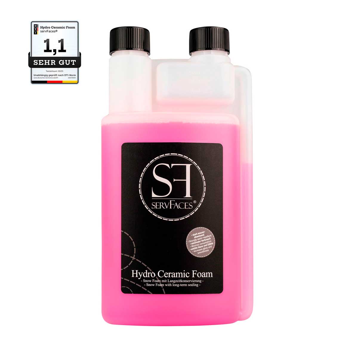 servFaces Hydro Ceramic Foam 1 L ist ideal für Anwender, die Fahrzeugoberflächen schnell reinigen und gleichzeitig mit einem hydrophoben Schutzfilm konservieren möchten.