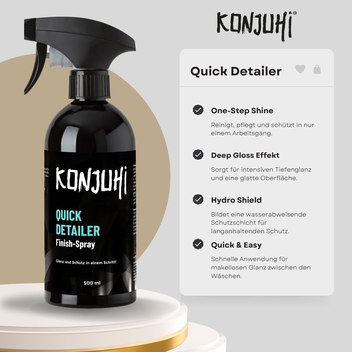 - Quick Detailer Finish-Spray 500ml – frischt den Lack auf und hinterlässt ein glattes, glänzendes Finish
