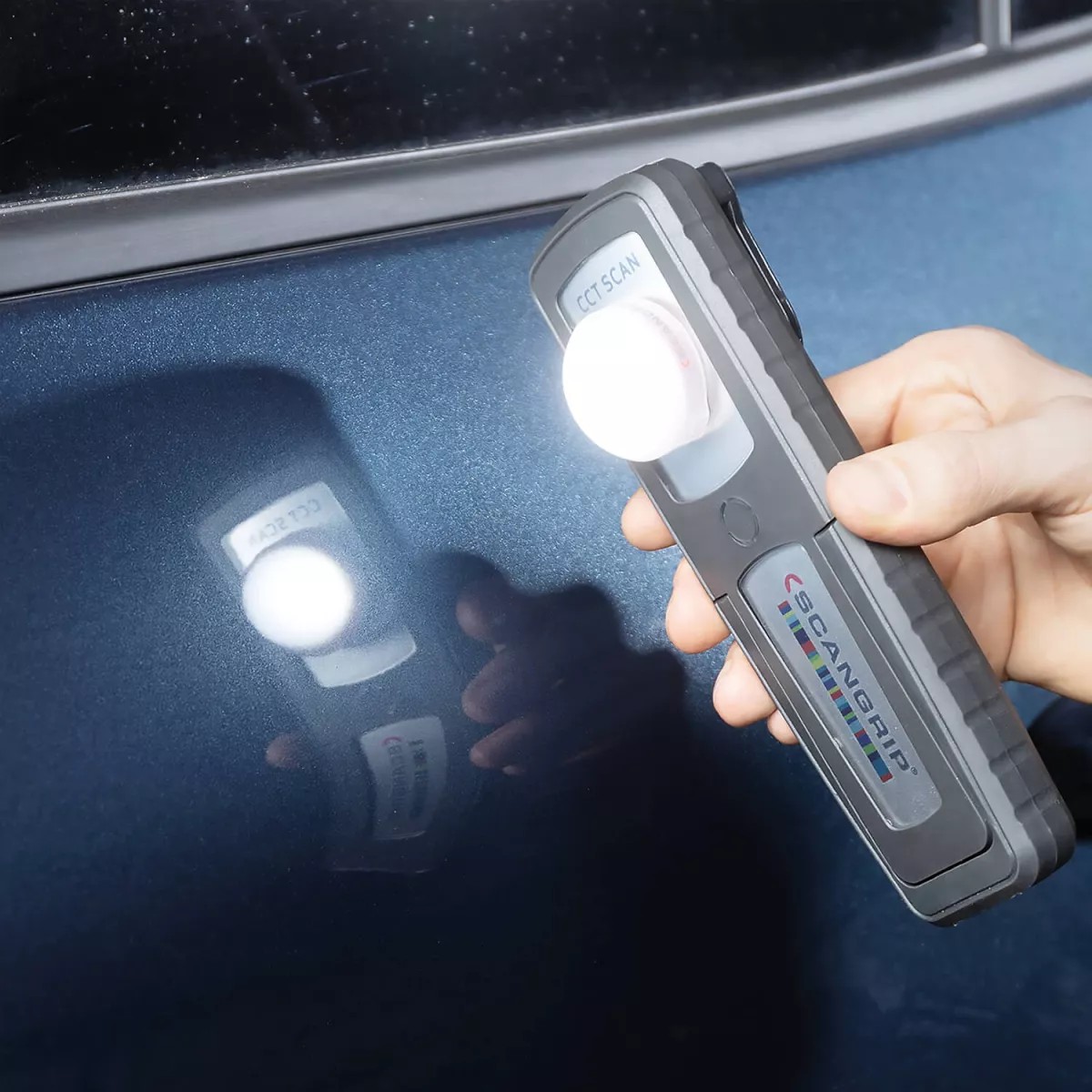 Die SCANGRIP Sunmatch 4 ist eine kompakte und leistungsstarke Akku-LED-Arbeitsleuchte, die speziell für die Fahrzeugaufbereitung und Farbanpassung entwickelt wurde. Dank der innovativen CCT SCAN-Funktion scannt die Lampe automatisch die Oberfläche mit einem Farbtemperaturbereich von 2500K bis 6500K, wodurch Lackfehler und Farbabweichungen präzise erkannt werden können. Die Scan-Funktion lässt sich jederzeit arretieren, um das Licht individuell an die jeweilige Inspektionsaufgabe anzupassen. Neben der einzigartigen Farbtemperaturregelung verfügt die SCANGRIP Sunmatch 4 über eine stufenlose Dimmfunktion von 10 % bis 100 % sowie ein Spotlicht an der Oberseite für gezielte Inspektionen. Maximale Flexibilität & robuste BauweiseDie Arbeitsleuchte lässt sich mühelos befestigen – entweder mit dem drehbaren Haken oder dem starken Magneten an der Unterseite. Der flexible Lampenkopf ist um 180° schwenkbar, sodass das Licht perfekt ausgerichtet werden kann. Mit der Schutzklasse IP65 ist die SCANGRIP Sunmatch 4 staub- und wasserdicht, während die lösungsmittelbeständige Glaslinse für eine lange Lebensdauer sorgt. Ein intelligentes Wärmeschutzsystem verhindert Überhitzung, indem die Lichtleistung nach drei Minuten im Maximalbetrieb automatisch auf 50 % reduziert wird. Für eine weichere Lichtverteilung ist ein kleiner Diffusor im Lieferumfang enthalten, der einfach auf die Linse montiert wird.Technische Daten: Akku: Li-Ion, 3,7V, 2600mAh Ladezeit: ca. 4 Stunden Betriebsdauer: 2-10 Stunden (Spotlicht: 3 Stunden) Eingangsspannung: 100-240V AC, 50/60Hz Farbtemperatur: 5-stufig einstellbar (2500K - 6500K) Lichtquelle: Ultra High CRI+ COB LED Gewicht: 267gLieferumfang: 1 × SCANGRIP Sunmatch 4 Handleuchte 1 × SCANGRIP Diffuser klein 1 × Handbuch